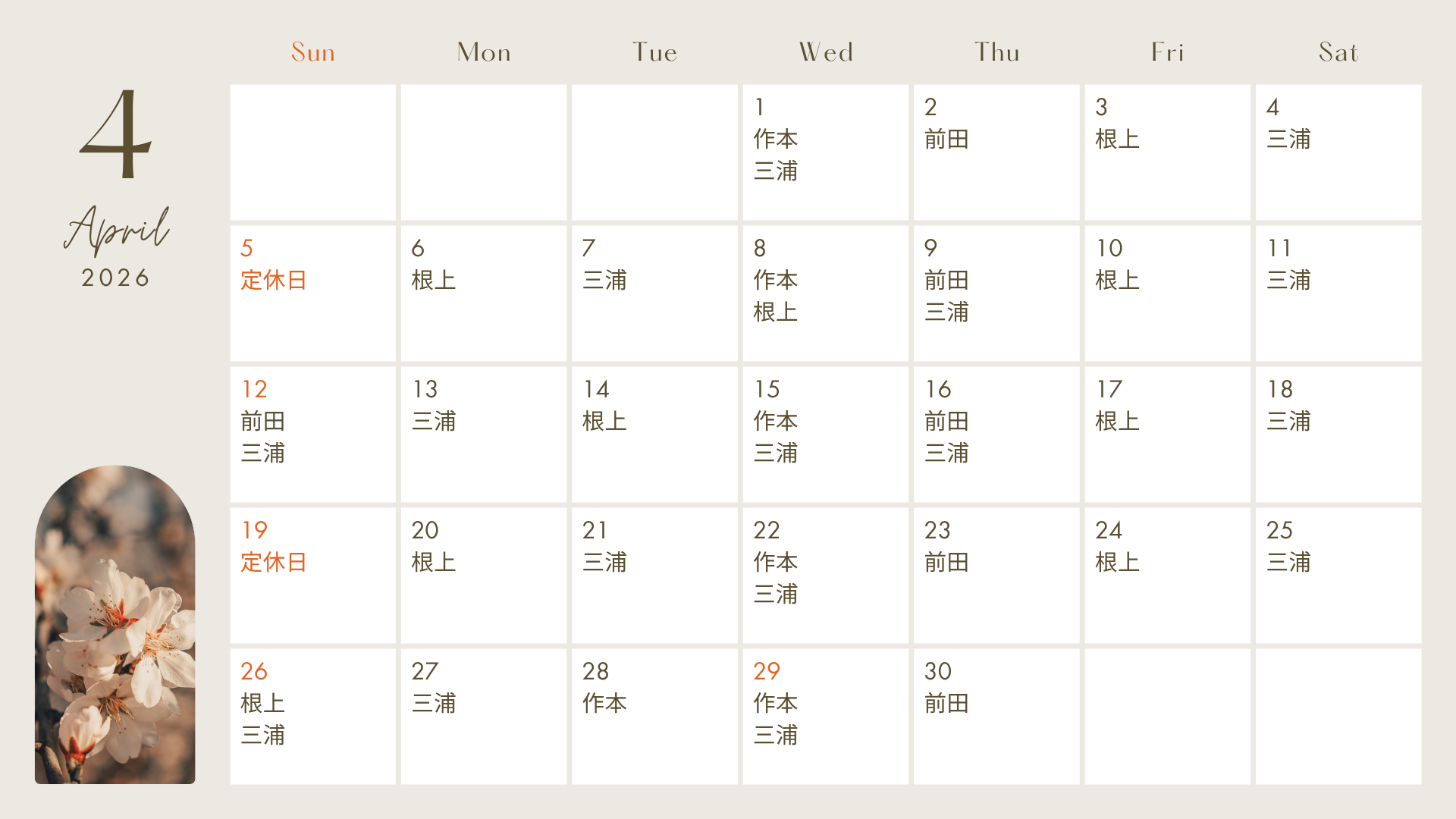 4月のお休み